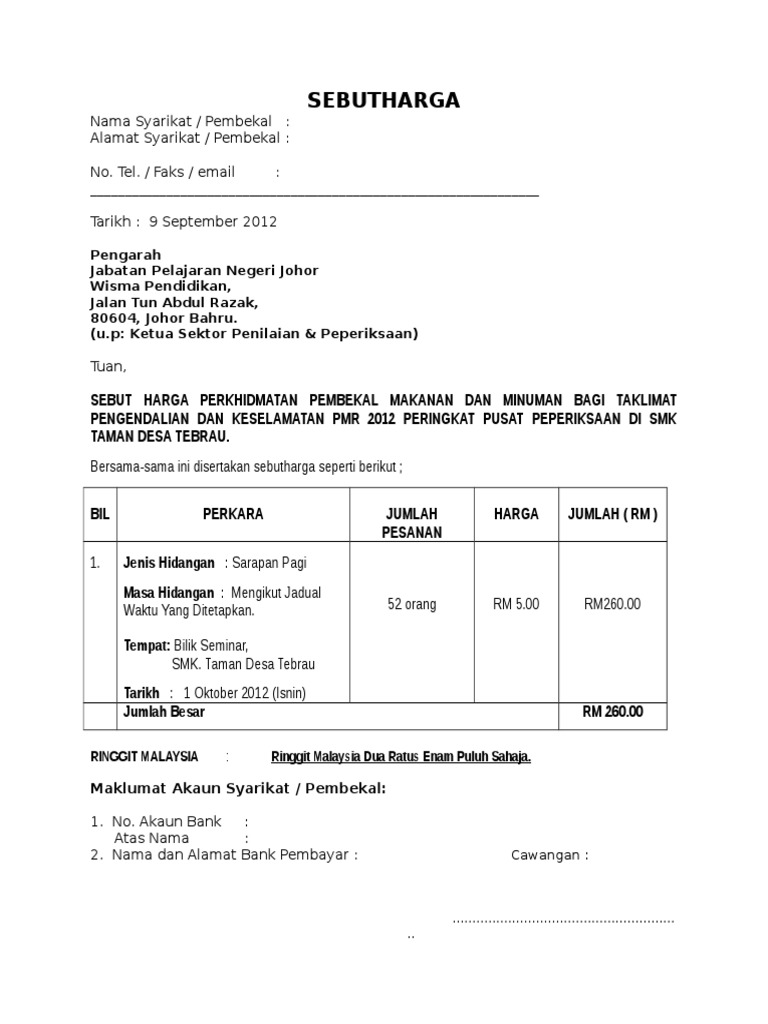 Quotation Contoh Surat Sebut Harga Nusagates